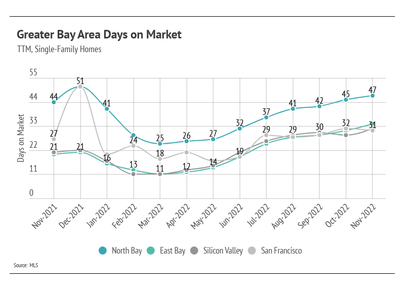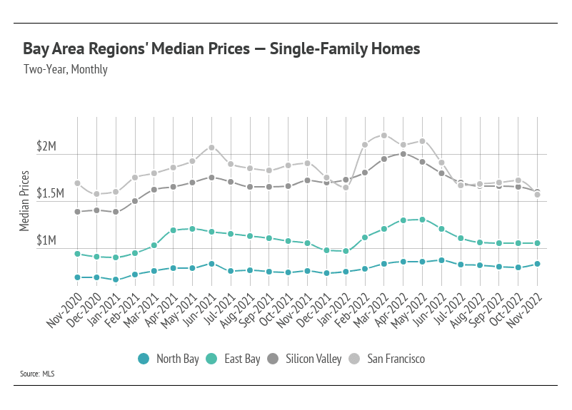 The Bay Area housing market has cooled considerably in the second half of 2022, a trend that will likely continue through the winter months.