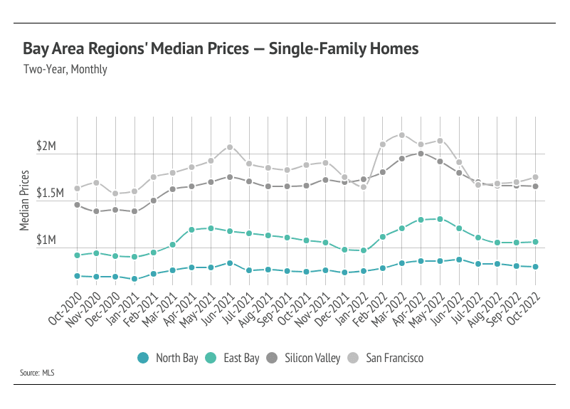 We have enough data to show that the housing market in the Bay Area is cooling substantially after one of the hottest real estate markets in history. However, demand in the Bay Area is somewhat evergreen. People simply always want to live here. Of course, you don’t have to be a real estate expert to realize that when interest rates shoot up, fewer buyers will be in the market, which generally puts less upward pressure on prices. Single-family home and condo prices have declined from their peaks reached earlier this year with the exception of Contra Costa and Napa condo prices, which reached new all-time highs and are likely statistical outliers rather than the start of a new trend. Moving forward, prices will likely contract slightly more through the rest of the year, which is typical during the slower holiday season. Home prices in the Bay Area grew at an unsustainable rate, and a contraction is a normal response to that sort of growth. We are now entering a stage of slower longer-term growth — but still growth. In the short term, prices may come down a little more, however. Real estate has shown itself to be one of the best investments in recent history and is, on average, the largest store of wealth for an individual or family. Price appreciation will likely move to a more normal growth rate of around 5-6% in the coming years, which makes for a much healthier market than what occurred in 2020 and 2021.