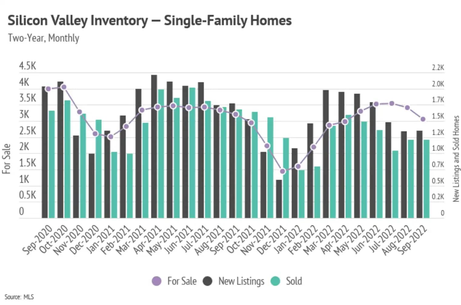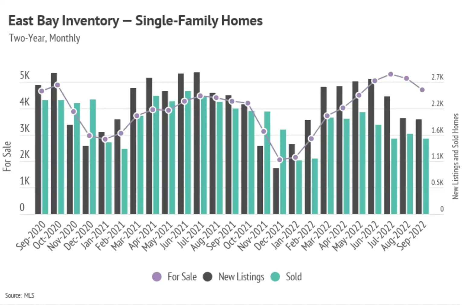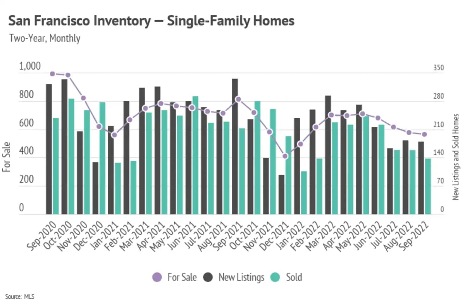 Single-family home and condo sales declined month-over-month, along with fewer new listings coming to market. This caused inventory to decline across the Bay Area, a trend that will likely continue through the rest of the year. The Bay Area, along with the rest of the country, has not returned to pre-pandemic inventory levels. Homes have generally sold faster over the past two years, making new listings more and more important to the market. Inventory generally grows when new listings increase or homes sit on the market. With rates rising at such a rapid pace, new listings are slowing considerably. We can tie new listings not only to supply but to demand as well, because sellers are often buying, too. Softening demand has brought the market closer to balance despite low inventory.