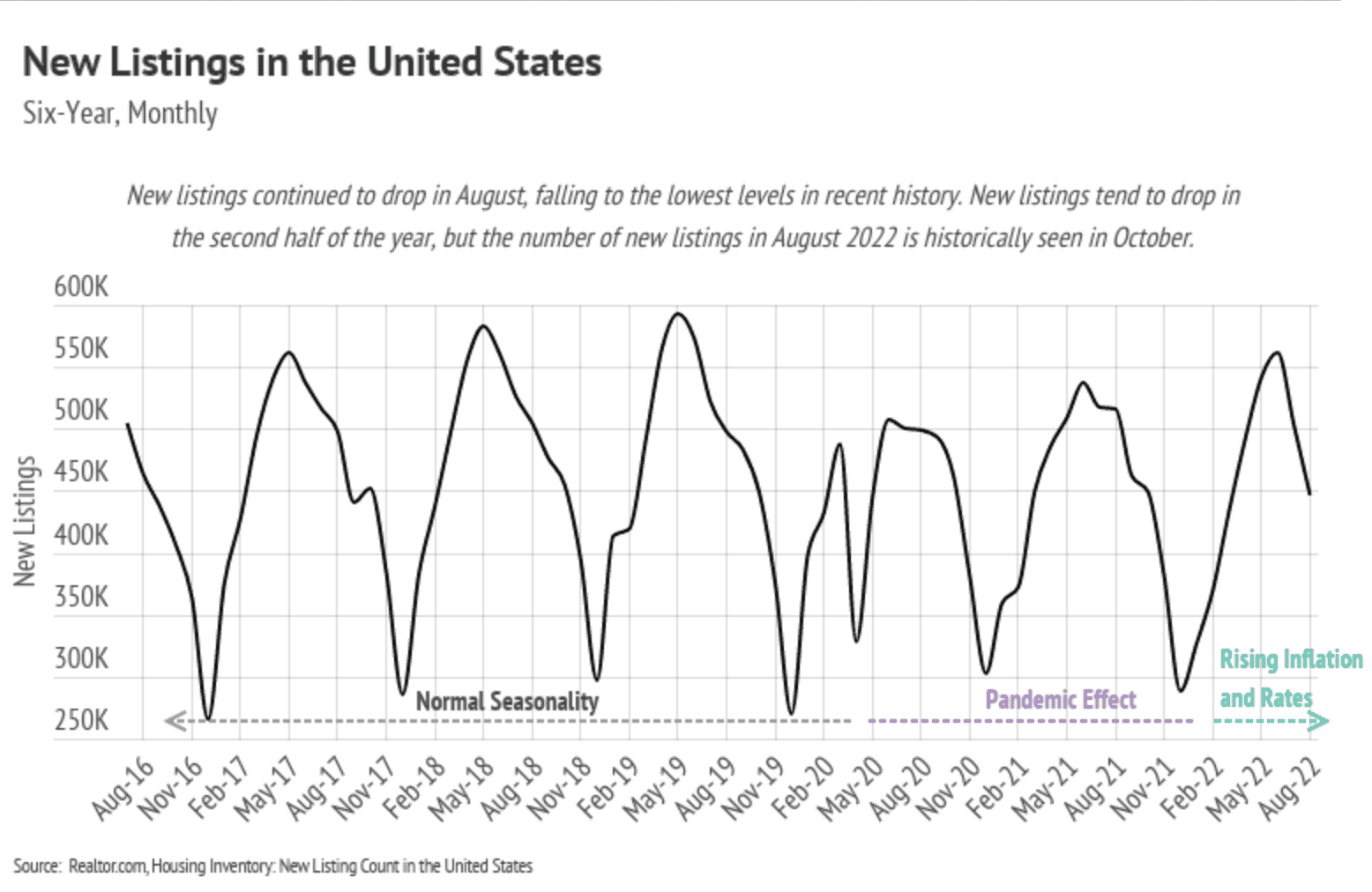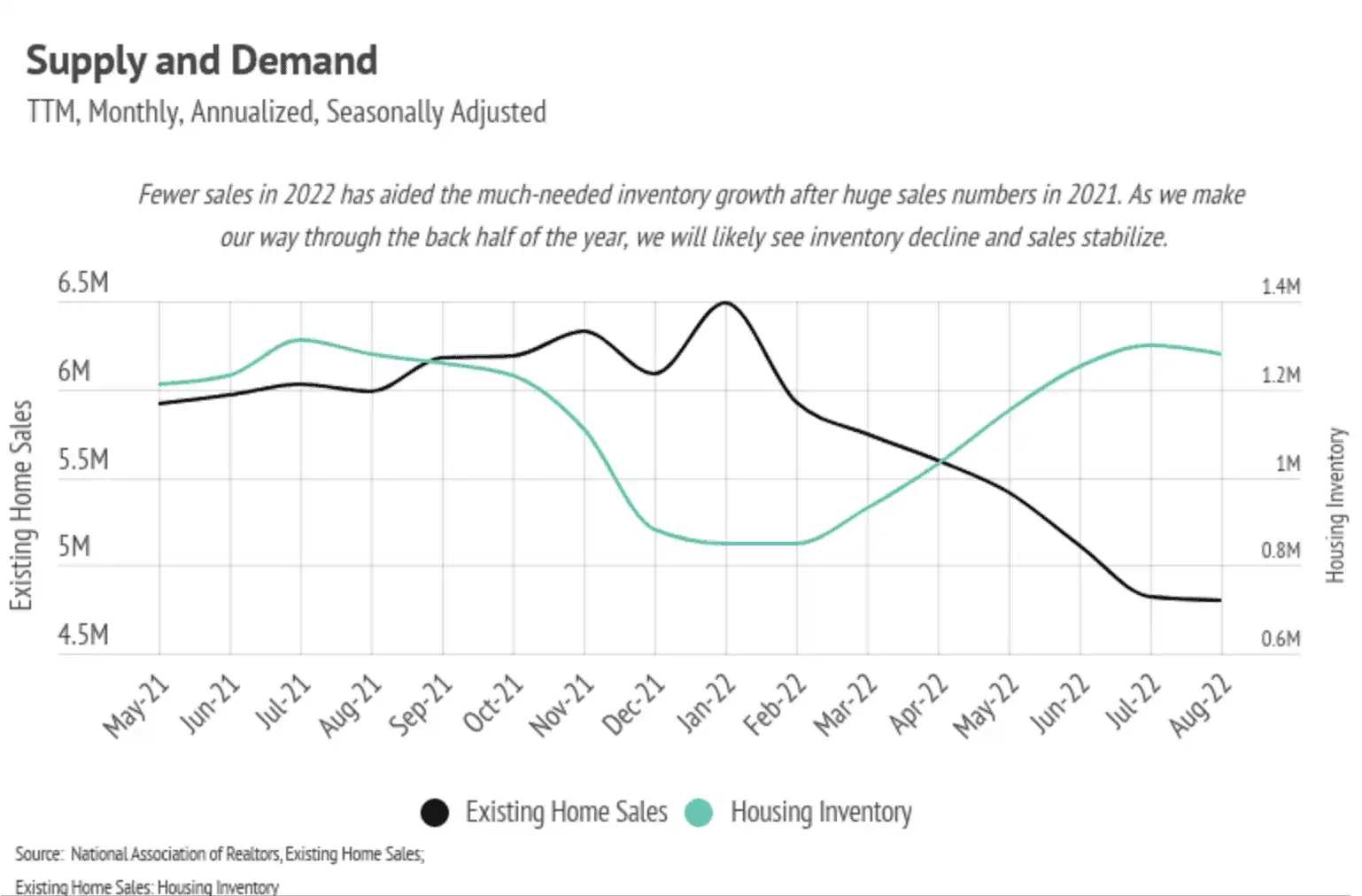 Demand for homes has declined over the past three months, which, besides the rate increase, is the seasonal norm. Because home sellers are often buying as they sell, new listings have dropped as well, causing inventory to decline. Inventory is still historically low and will be the one major buoy for home prices. The market has shifted to softening demand and softening supply. Mortgage applications are down 29% year-over-year according to the Mortgage Bankers Association. This, too, isn’t terribly surprising. Generally, homes aren’t bought and sold over and over in short time frames. The high number of sales in 2021 indicates fewer sales in 2022, especially because the buying incentives in 2021 are no longer in place. We can finally say that the market is cooling, but after the hottest two years since the mid-2000s, cooling indicates a healthier market.